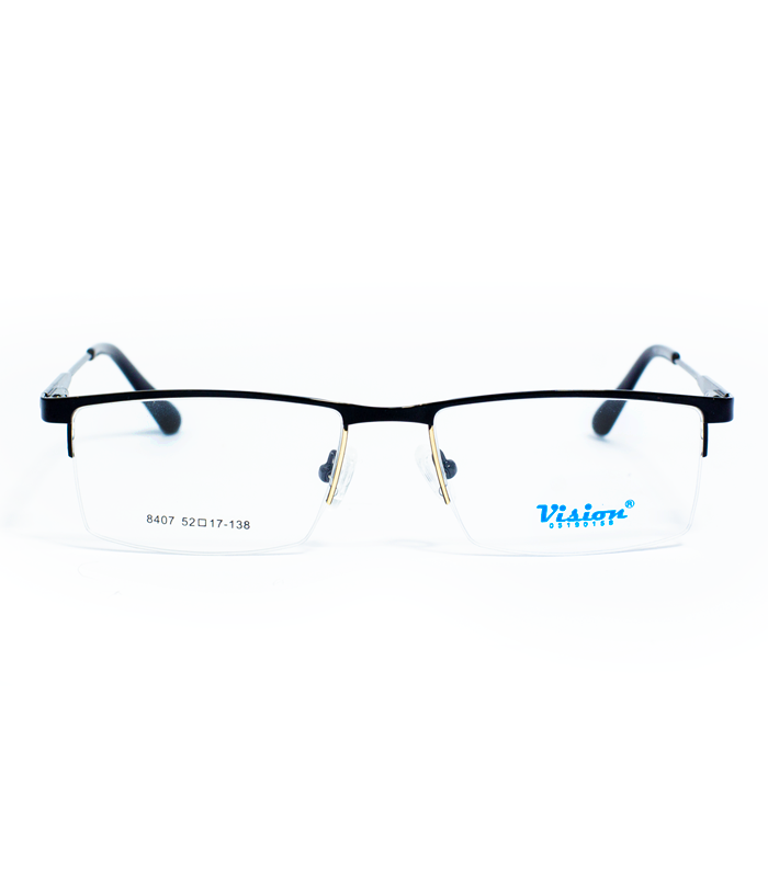 نظارة طبية بنصف إطار معدنية بتصميم أنيق وعصري تناسب الرجال والنساء، تجمع بين الخفة والمتانة لتمنحك راحة تدوم وأناقة لا تُقاوم. إطارها المعدني الرفيع يضفي لمسة من الرقي والاحترافية، لتناسب كل الأذواق والإطلالات، من الكلاسيكية إلى العصرية